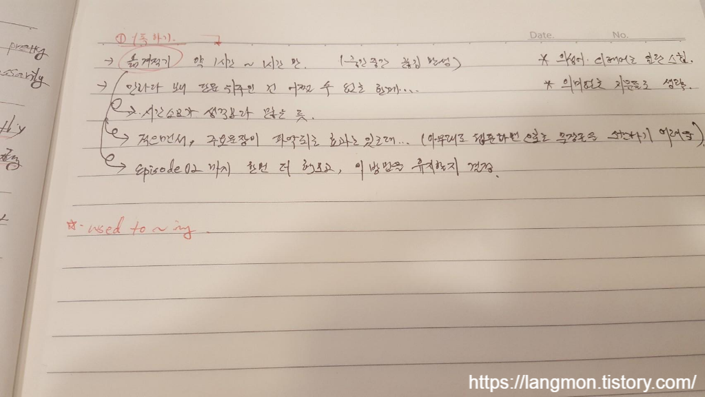 그제서야 다시 볼 문장, 스킵할 문장이 좀 눈에 들어오더라고요...^^ (다 핑계야...) 공부시간을 딱! 따로 빼서 확보할 형편이 못 되서 중간 중간 치고 들어오는 일 처리하며 적었더니, 에피 하나 적는데 1시간? 1.5시간? 암튼 꽤 걸립니다. 좀 소모적이지 않나...하는 회의가 사알짝 밀려왔어요...☞☜