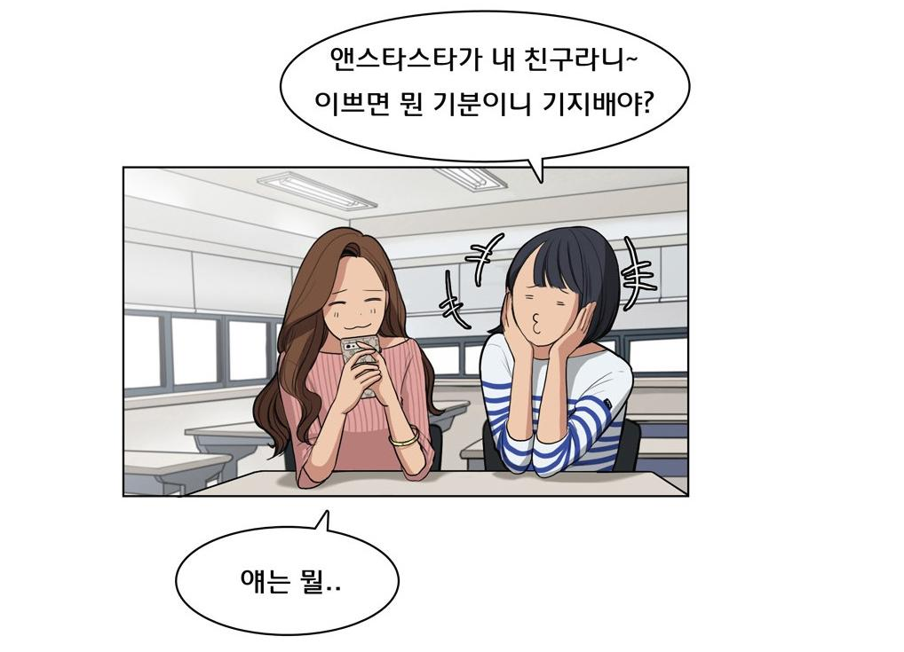 : [여신강림]프롤로그 편의 메인 메시지는 "이쁘다는 칭찬, 난 익숙해"예요. 다소 재수없어 보이는 사례들을 점층적으로 묘사하다가, 메이컵 지운 주인공의 반전쌩얼이 주는 충격을 극대화시킵니다.^^ '나한테 OOO는 익숙하지'라는 표현도 일상에서 많이 쓰는 표현인 것 같아요. 그러고 보니 '비 유즏투 아이앤쥐~' 겁나 많이 외웠던 기억이 나지 않겠습니까ㅎㅎㅎ